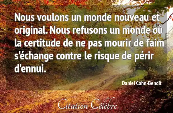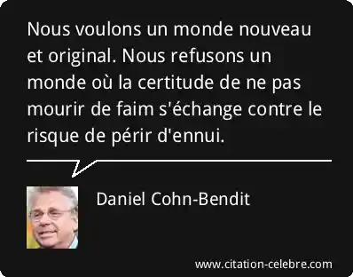 Nous voulons un monde nouveau et original. Nous refusons un monde où la certitude de ne pas mourir de faim s'échange contre le risque de périr d'ennui.