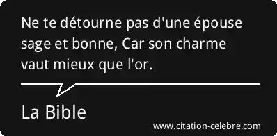Ne te détourne pas d'une épouse sage et bonne, Car son charme vaut mieux que l'or.