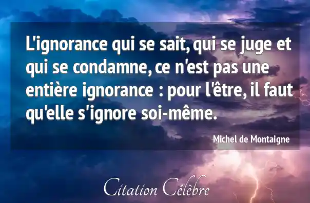 L'ignorance qui se sait, qui se juge et qui se condamne, ce n'est pas une entière ignorance : pour l'être, il faut qu'elle s'ignore soi-même.