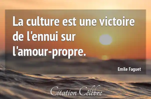 La culture est une victoire de l'ennui sur l'amour-propre.