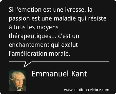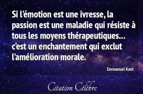 Si l'émotion est une ivresse, la passion est une maladie qui résiste à tous les moyens thérapeutiques... c'est un enchantement qui exclut l'amélioration morale.