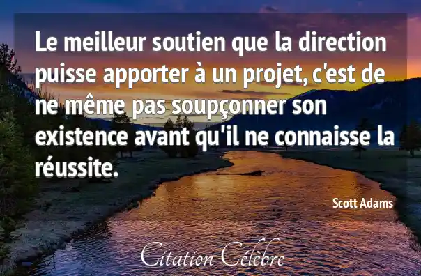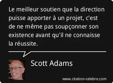 Le meilleur soutien que la direction puisse apporter à un projet, c'est de ne même pas soupçonner son existence avant qu'il ne connaisse la réussite.