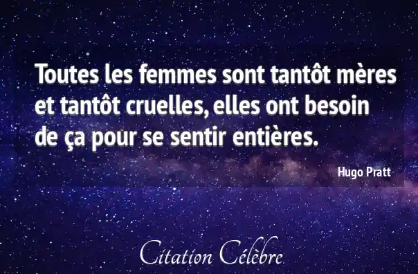 Citation Hugo Pratt femmes : Toutes les femmes sont tantôt mères et tantôt cruelles, elles...