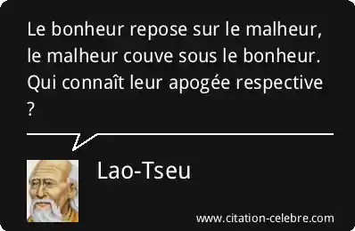 Le bonheur repose sur le malheur, le malheur couve sous le bonheur. Qui connaît leur apogée respective ?