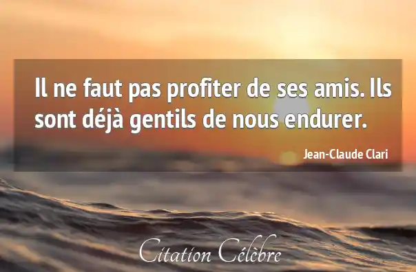 Il ne faut pas profiter de ses amis. Ils sont déjà gentils de nous endurer.
