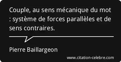 Couple, au sens mécanique du mot : système de forces parallèles et de sens contraires.