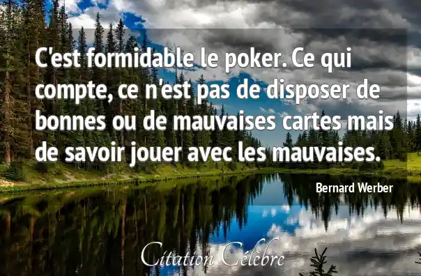 C'est formidable le poker. Ce qui compte, ce n'est pas de disposer de bonnes ou de mauvaises cartes mais de savoir jouer avec les mauvaises.