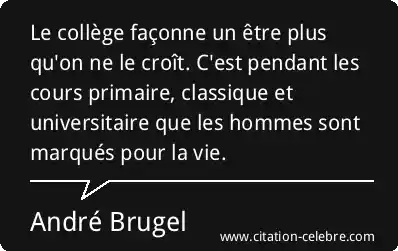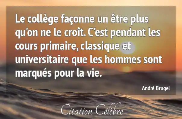 Le collège façonne un être plus qu'on ne le croît. C'est pendant les cours primaire, classique et universitaire que les hommes sont marqués pour la vie.