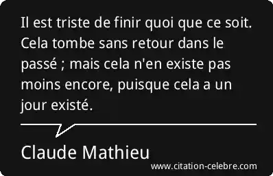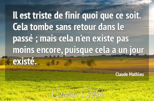 Il est triste de finir quoi que ce soit. Cela tombe sans retour dans le passé ; mais cela n'en existe pas moins encore, puisque cela a un jour existé.