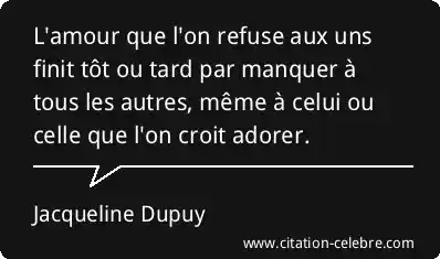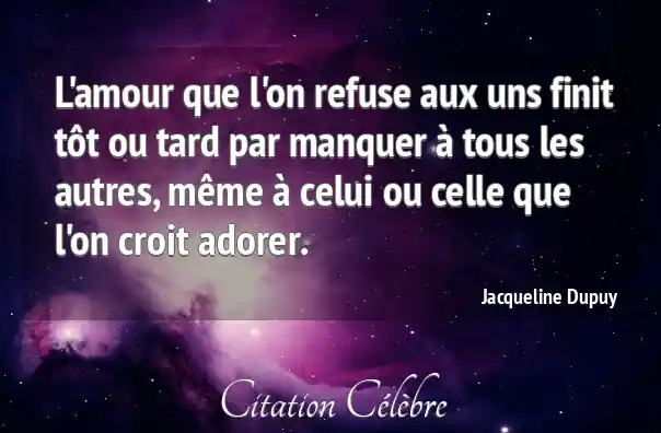 L'amour que l'on refuse aux uns finit tôt ou tard par manquer à tous les autres, même à celui ou celle que l'on croit adorer.