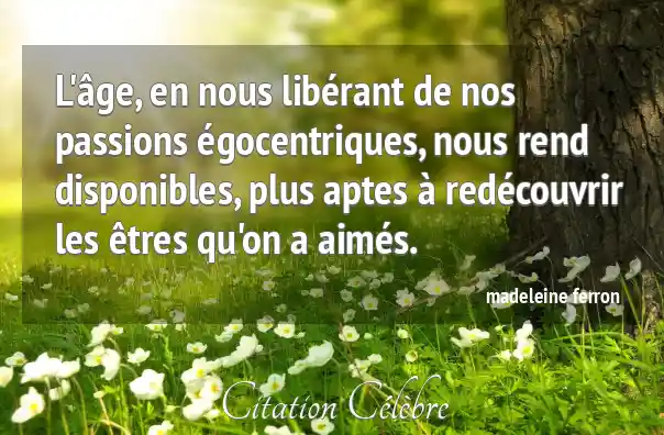 L'âge, en nous libérant de nos passions égocentriques, nous rend disponibles, plus aptes à redécouvrir les êtres qu'on a aimés.