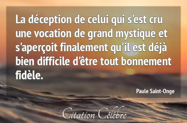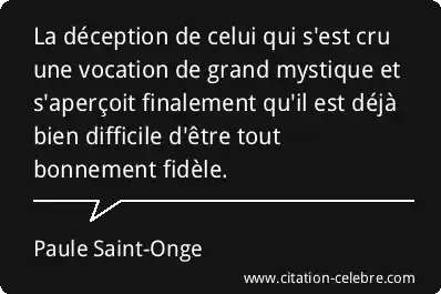 La déception de celui qui s'est cru une vocation de grand mystique et s'aperçoit finalement qu'il est déjà bien difficile d'être tout bonnement fidèle.