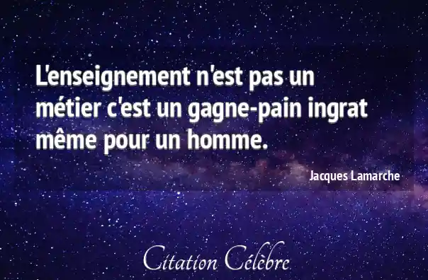 L'enseignement n'est pas un métier c'est un gagne-pain ingrat même pour un homme.