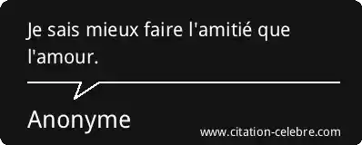 Je sais mieux faire l'amitié que l'amour.