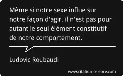 Même si notre sexe influe sur notre façon d'agir, il n'est pas pour autant le seul élément constitutif de notre comportement.