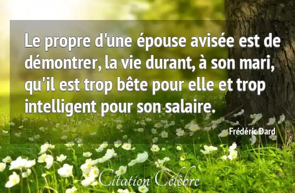 Le propre d'une épouse avisée est de démontrer, la vie durant, à son mari, qu'il est trop bête pour elle et trop intelligent pour son salaire.