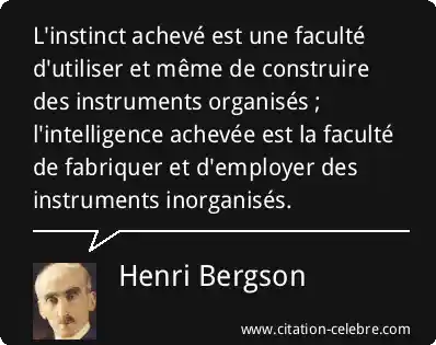 L'instinct achevé est une faculté d'utiliser et même de construire des instruments organisés ; l'intelligence achevée est la faculté de fabriquer et d'employer des instruments inorganisés.