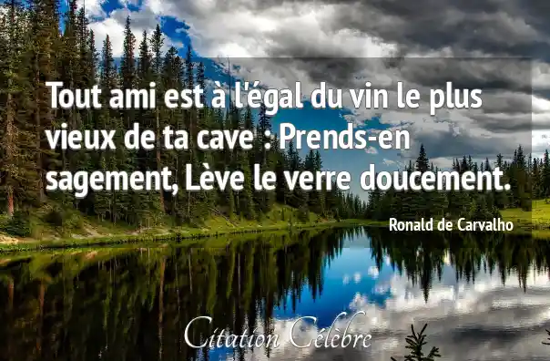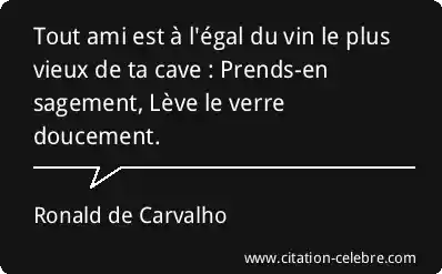 Tout ami est à l'égal du vin le plus vieux de ta cave : Prends-en sagement, Lève le verre doucement.