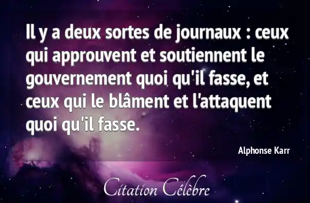 Il y a deux sortes de journaux : ceux qui approuvent et soutiennent le gouvernement quoi qu'il fasse, et ceux qui le blâment et l'attaquent quoi qu'il fasse.