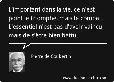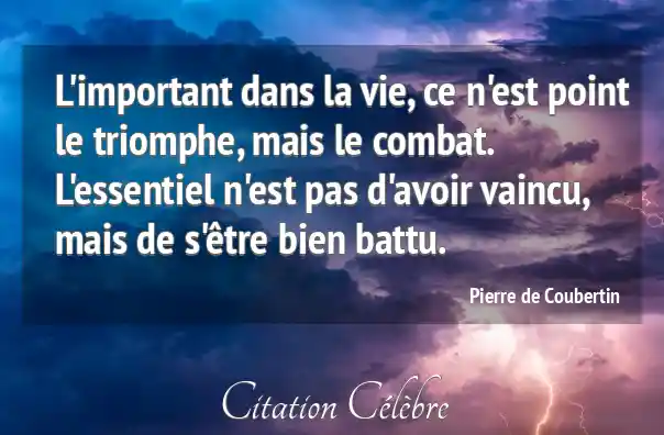 L'important dans la vie, ce n'est point le triomphe, mais le combat. L'essentiel n'est pas d'avoir vaincu, mais de s'être bien battu.