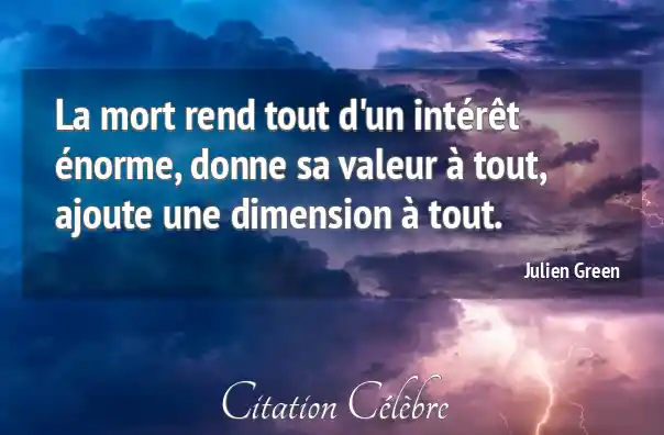 La mort rend tout d'un intérêt énorme, donne sa valeur à tout, ajoute une dimension à tout.