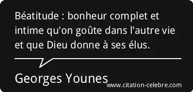 Béatitude : bonheur complet et intime qu'on goûte dans l'autre vie et que Dieu donne à ses élus.