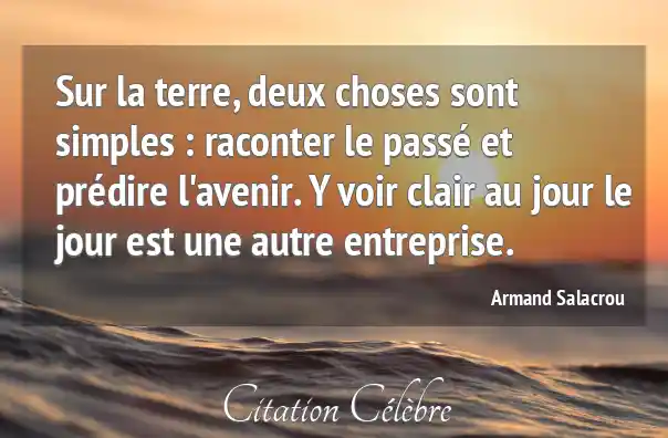 Sur la terre, deux choses sont simples : raconter le passé et prédire l'avenir. Y voir clair au jour le jour est une autre entreprise.