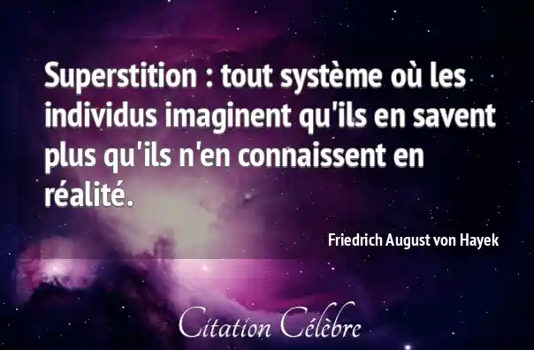 Superstition : tout système où les individus imaginent qu'ils en savent plus qu'ils n'en connaissent en réalité.