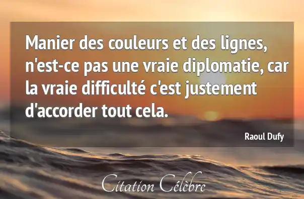 Manier des couleurs et des lignes, n'est-ce pas une vraie diplomatie, car la vraie difficulté c'est justement d'accorder tout cela.