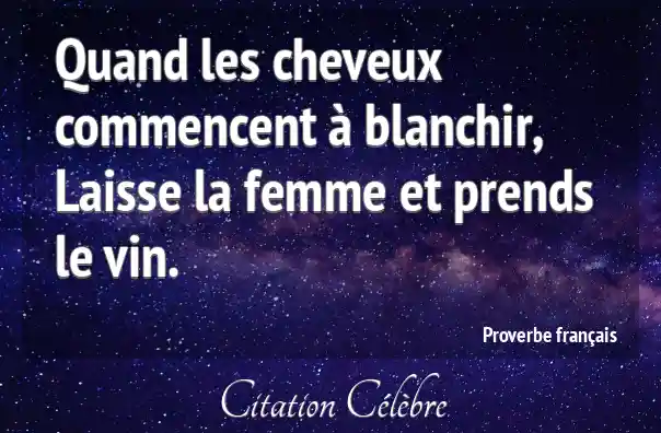 Quand les cheveux commencent à blanchir, Laisse la femme et prends le vin.