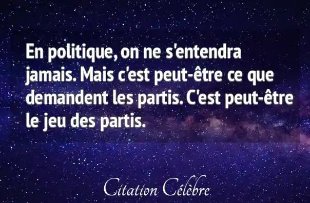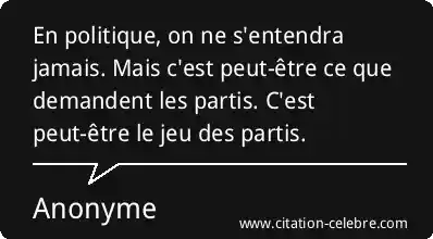 En politique, on ne s'entendra jamais. Mais c'est peut-être ce que demandent les partis. C'est peut-être le jeu des partis.