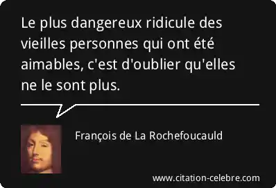 Le plus dangereux ridicule des vieilles personnes qui ont été aimables, c'est d'oublier qu'elles ne le sont plus.