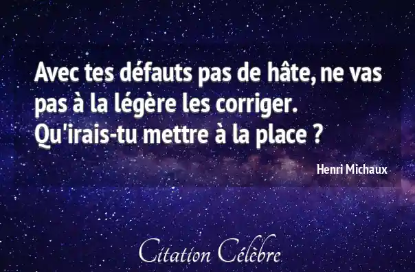 Avec tes défauts pas de hâte, ne vas pas à la légère les corriger. Qu'irais-tu mettre à la place ?