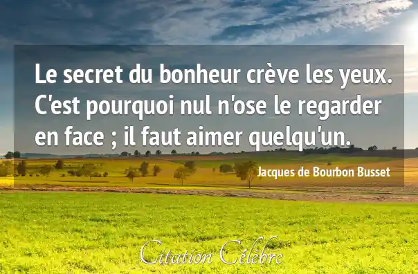 Le secret du bonheur crève les yeux. C'est pourquoi nul n'ose le regarder en face ; il faut aimer quelqu'un.