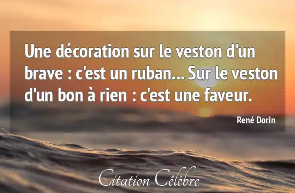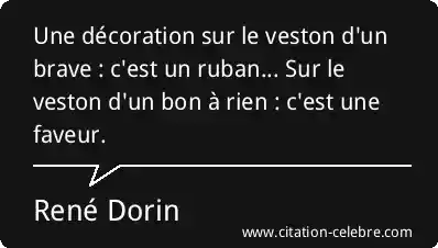 Une décoration sur le veston d'un brave : c'est un ruban... Sur le veston d'un bon à rien : c'est une faveur.