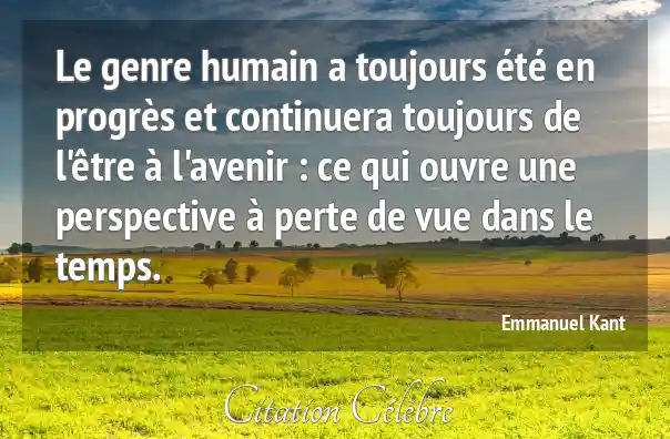 Le genre humain a toujours été en progrès et continuera toujours de l'être à l'avenir : ce qui ouvre une perspective à perte de vue dans le temps.