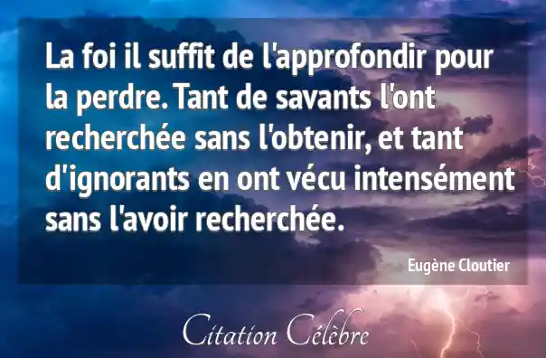 La foi il suffit de l'approfondir pour la perdre. Tant de savants l'ont recherchée sans l'obtenir, et tant d'ignorants en ont vécu intensément sans l'avoir recherchée.