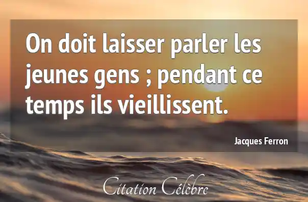 On doit laisser parler les jeunes gens ; pendant ce temps ils vieillissent.