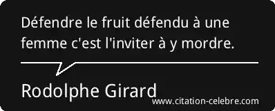 Citation Rodolphe Girard femme : Défendre le fruit défendu à une femme c'est l'inviter à...