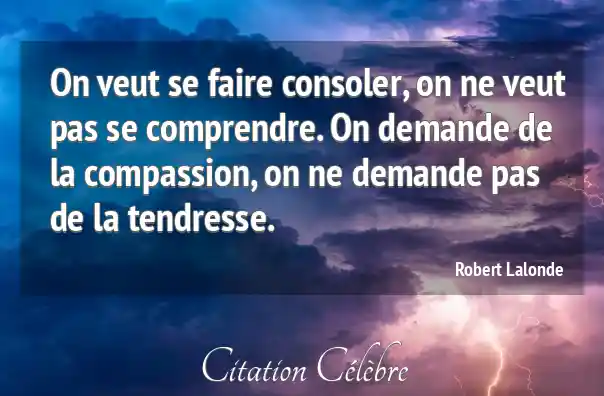 On veut se faire consoler, on ne veut pas se comprendre. On demande de la compassion, on ne demande pas de la tendresse.