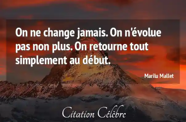 On ne change jamais. On n'évolue pas non plus. On retourne tout simplement au début.