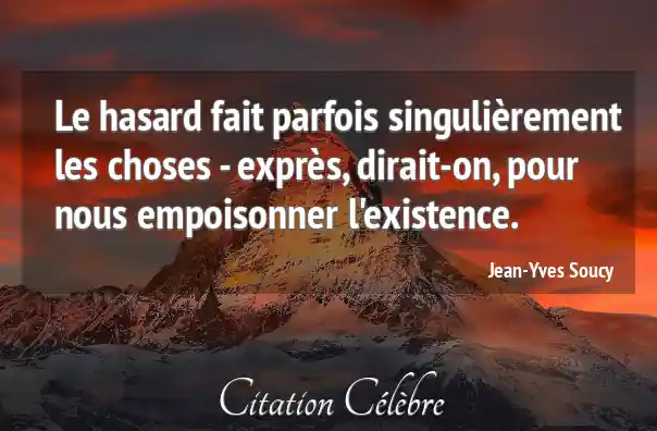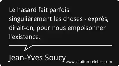 Le hasard fait parfois singulièrement les choses - exprès, dirait-on, pour nous empoisonner l'existence.