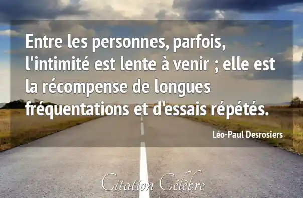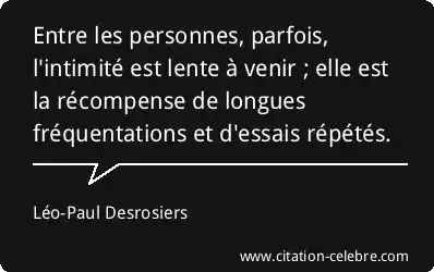 Entre les personnes, parfois, l'intimité est lente à venir ; elle est la récompense de longues fréquentations et d'essais répétés.