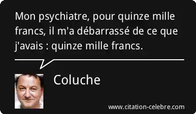 Mon psychiatre, pour quinze mille francs, il m'a débarrassé de ce que j'avais : quinze mille francs.