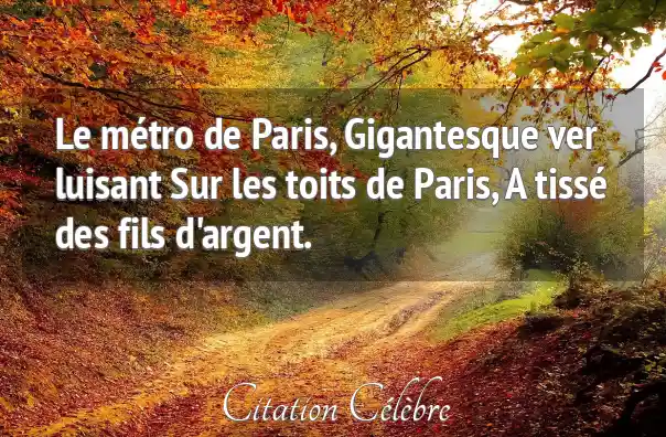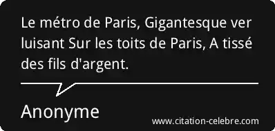 Le métro de Paris, Gigantesque ver luisant Sur les toits de Paris, A tissé des fils d'argent.