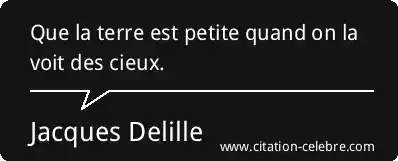 Que la terre est petite quand on la voit des cieux.