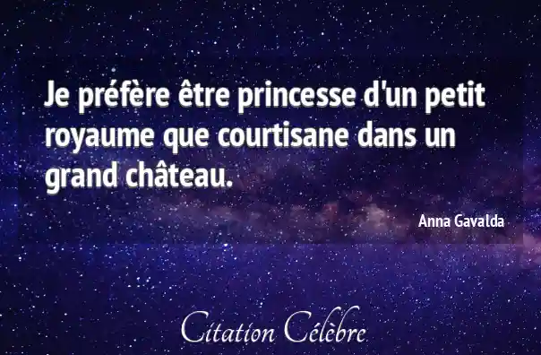 Je préfère être princesse d'un petit royaume que courtisane dans un grand château.