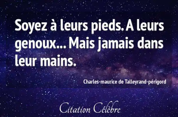 Soyez à leurs pieds. A leurs genoux... Mais jamais dans leur mains.