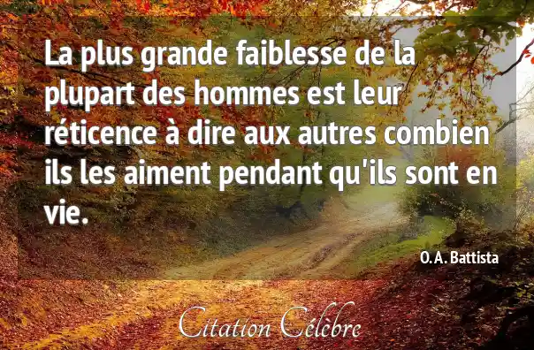 La plus grande faiblesse de la plupart des hommes est leur réticence à dire aux autres combien ils les aiment pendant qu'ils sont en vie.