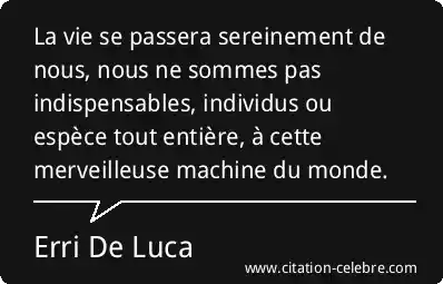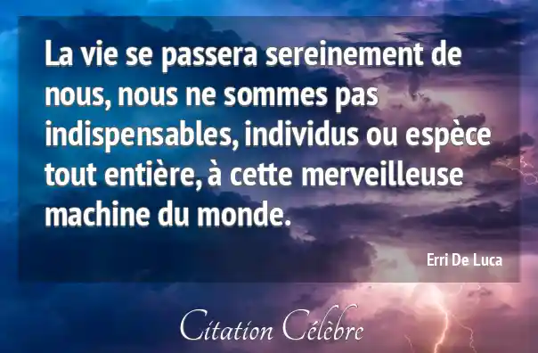 La vie se passera sereinement de nous, nous ne sommes pas indispensables, individus ou espèce tout entière, à cette merveilleuse machine du monde.